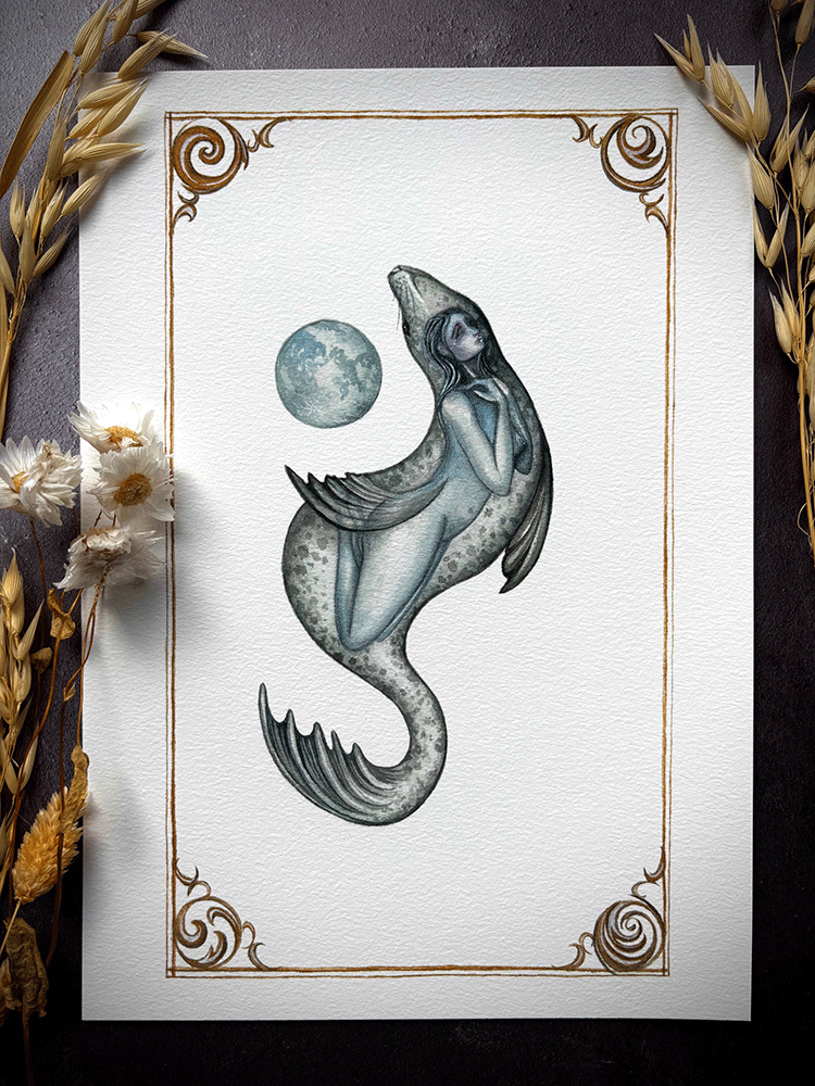 This particular Selkie has reclaimed her stolen skin and returned to her wild, watery home beneath the crashing waves, never to be tricked again. She will only ever answer the call of the moon.