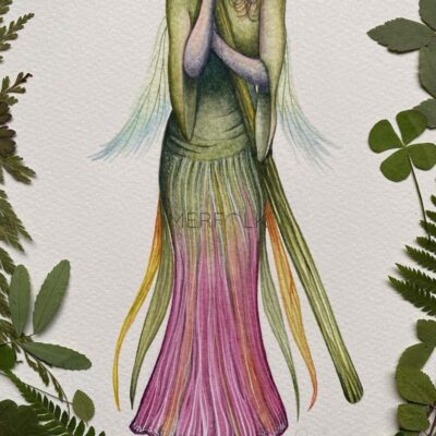 She has been created with professional watercolours and her wings painted in metallic watercolour paints, to create an ethereal, transparent appearance and a truly magical shimmer.